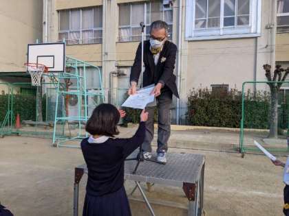 学校長から、夏の読書感想文の表彰がありました。みんなから拍手をもらっていました。
