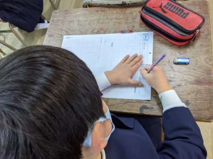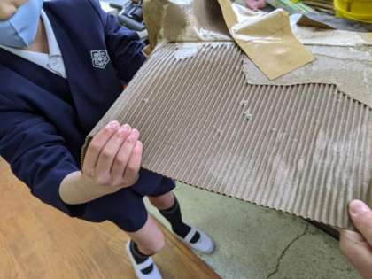 ダンボールを水でふやかして、もこもこがでるように上手にはがしていました。