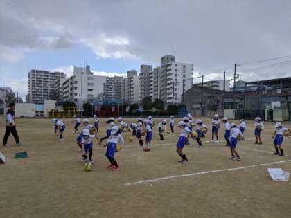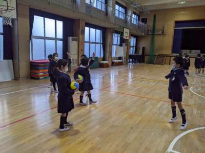 ボールを使って、投げてキャッチしたり、体のまわりを回したりしていました。