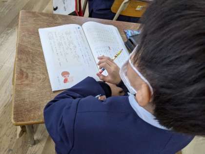教科書の漢字の問題に取り組んでいました。わからない漢字は、自分で調べていました。
