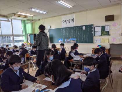 文章を読んで、書いてあることをもとに考えを深めていました。