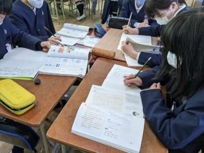 グループで自分たちで決めたテーマについて話し合っていました。