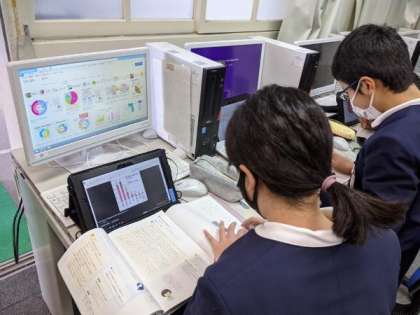 パソコン教室で、食品ロスなど自分たちのテーマに関わることを調べていました。