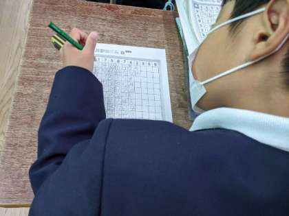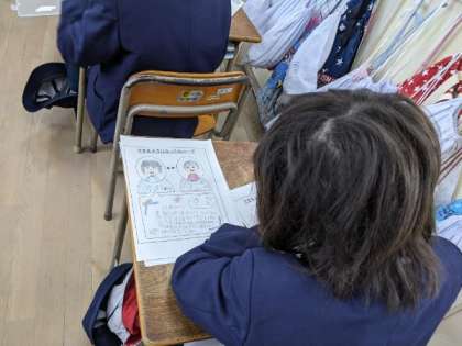 友だちが1年間で成長したところをみつけて、カードに書いていました。