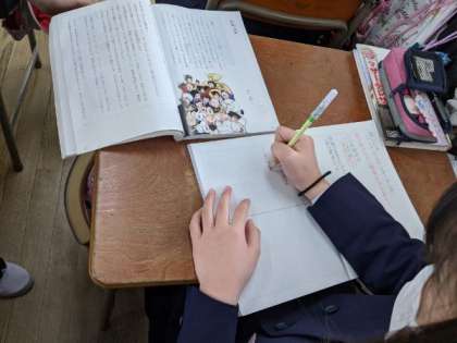 教科書を手がかりにして、調べたことをノートに書いていました。