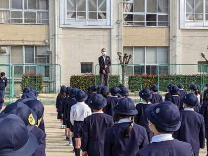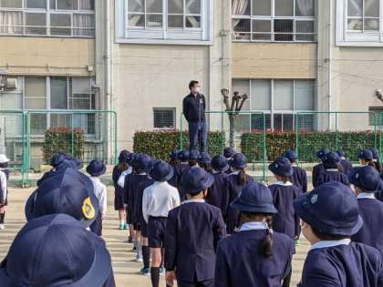 いいお天気の中、全学年揃って児童朝会を行い、少しずつできることが増えてきているのかな、と感じていました。