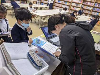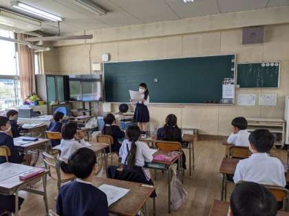 自己紹介カードをもとに自分のことをみんなに伝えていました。