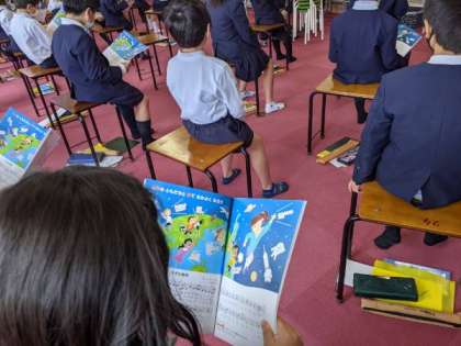 日直カードや自己紹介カードをかいていました。