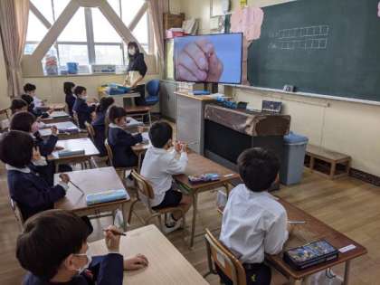 正しい鉛筆の持ち方を動画を見ながら、学習していました。