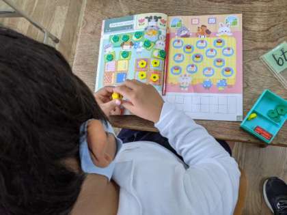 おはじきを使って、数の感覚を養っていました。