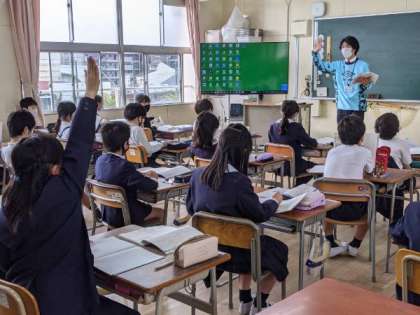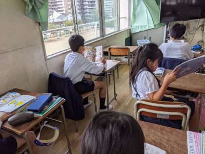 発育測定を終えて、静かに本を読んで、先生を待っていました。