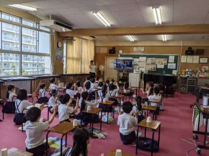 茶つみのメロディーに合わせて、手でリズムをとっていました。