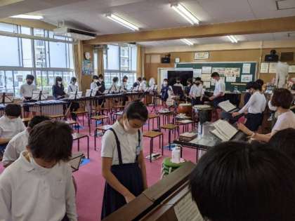 友だちの音を聞いて、音を合わせる学習をしていました。