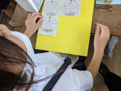 友だちのいいところをみつけて書いたり、もらったカードをファイルに貼ったりしていました。