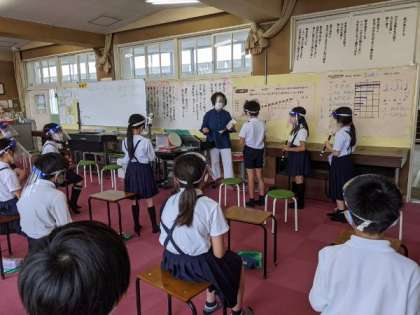 フェイスシールドをつけ、感染症対策を講じながら、学習を進めていました。