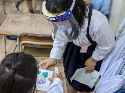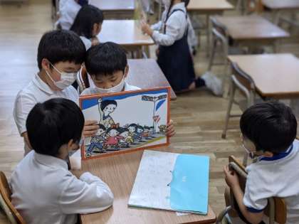 2年生は、1年生のために、紙芝居をしたり、アサガオのタネのプレゼントをあげたりしていました。