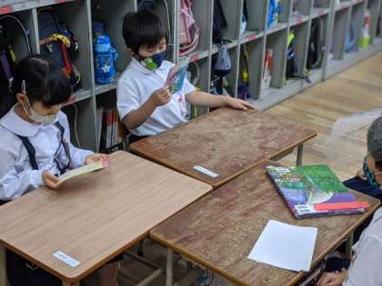 1年生は、2年生のお兄さん・お姉さんの言うことをよく聞いていました。