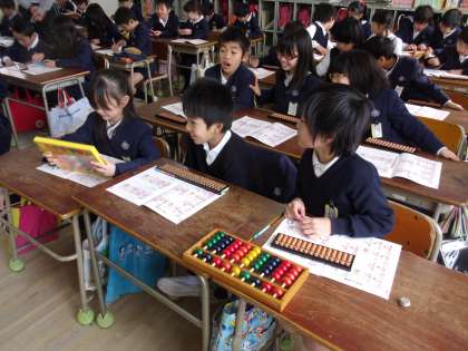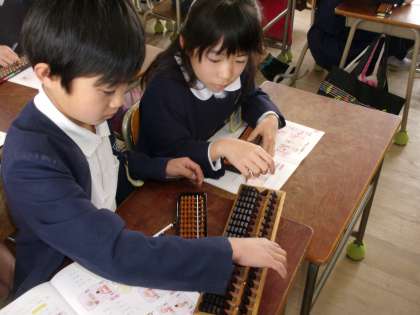 3月9日(月)11日(水)の2回に分けて、3年生にそろばんの先生にきていただき、教えてもらいました。いろいろなおもしろい「そろばん」も見せていただきました。