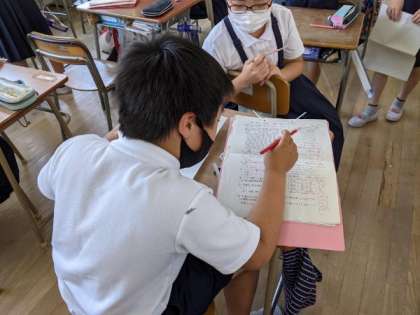返ってきたテストのやり直しに取り組んでいました。