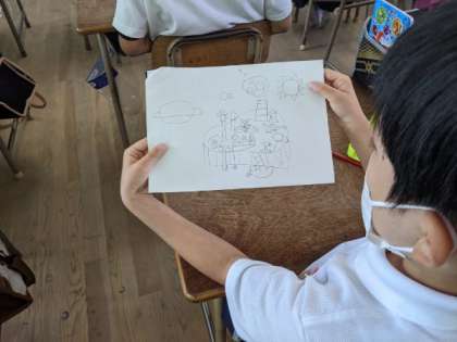 えのぐで描く島の設計図をかいていました。