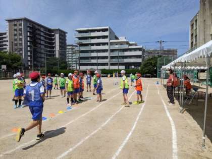 バトンパスの練習をしたり、チームで作戦会議を行ったりしていました。