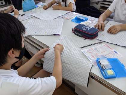 家庭科「ナップザックづくり」