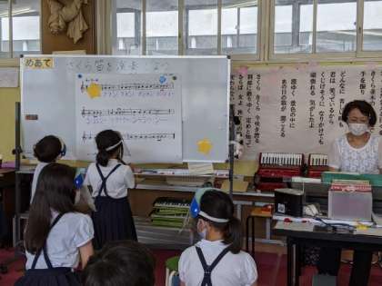 感染症対策を講じながら、リコーダーのテストをしていました。