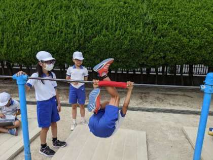 いろいろな技に挑戦し、友だちと教え合いをしていました。