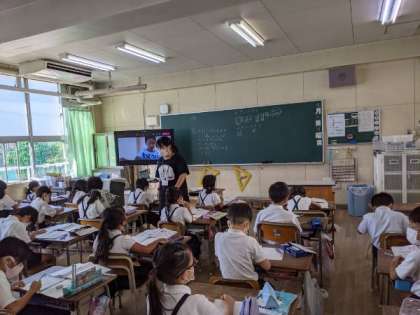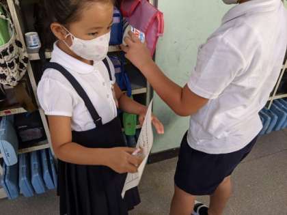 身の回りにある水をはかれるものを探す学習やかさの足し算の学習をしていました。