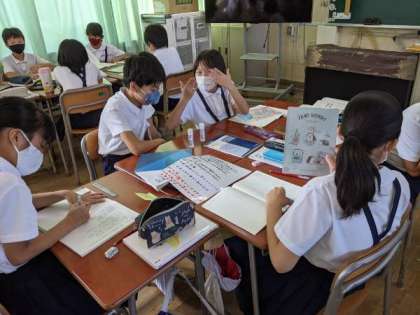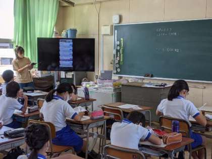 北海道のソーラン節、沖縄のエイサーなど地域の踊りについて学習をしていました。