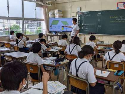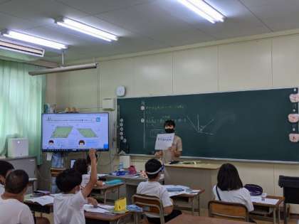 習熟度別に分かれて、四角形の特徴について学習していました。