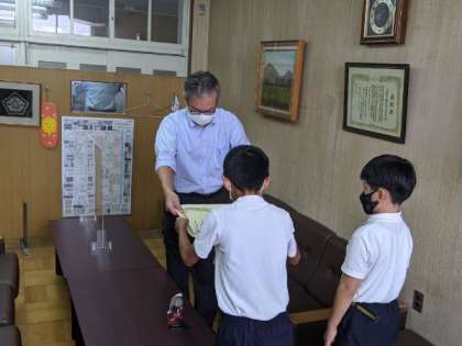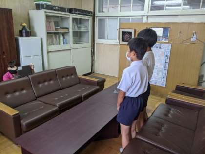 はじめに学校長から児童のみなさんにむけてお話がありました。
