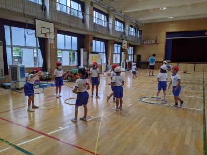 用具を使って、どんなうごきあそびができるのか楽しんでいました。