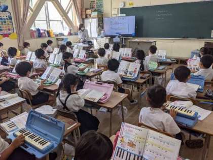 鍵盤ハーモニカを使って、指の練習をしていました。