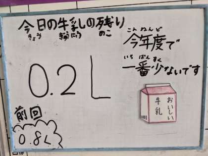 今日は、今年度の牛乳の残りが1番少ない日でした!