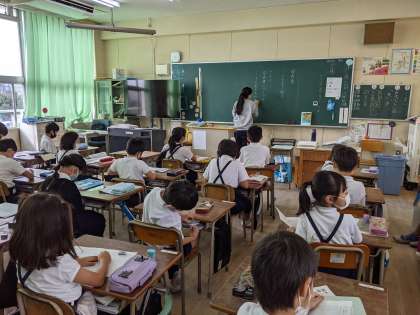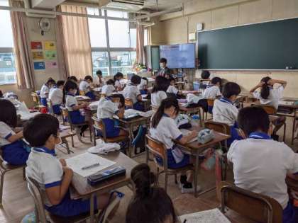 自分たちで考えたお話を発表するときの約束を確認していました。