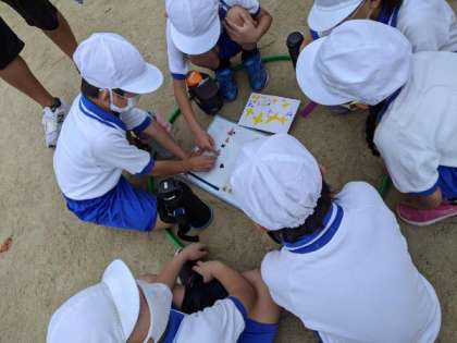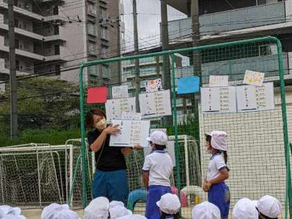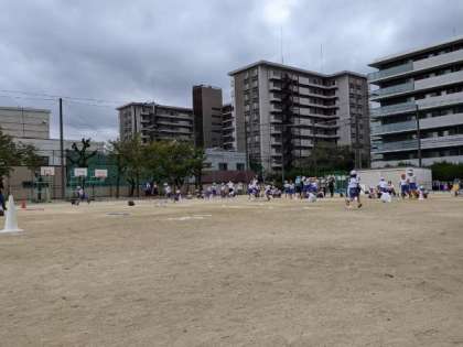 子どもたちは、作戦会議をしたり隣のグループと競走したりしていました。