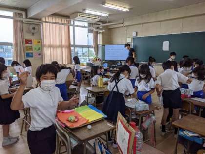 2年生は、1年生がつくったおもちゃを生かした遊びのルールをよく聞いて、とても楽しそうにしていました。