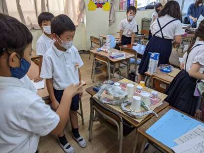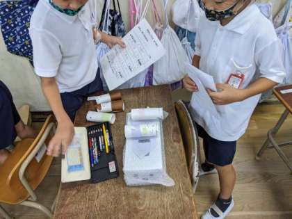 2年生が自分たちで作ったおもちゃを生かしたお店を開き、1年生を招待していました。