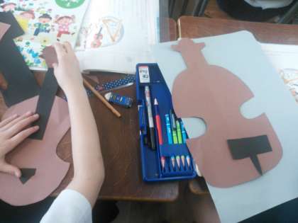 国語の教科書の内容の「楽器」を作成していました。
