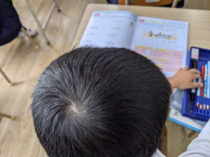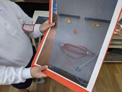 学校の中の物に自分が作った顔を貼り付けて、命を吹き込んでいました。