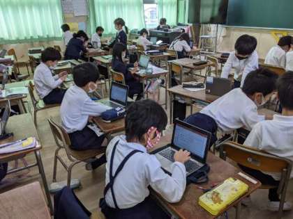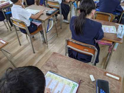 学習者用端末を使って、友だちと協力しながら「ビーバークイズ」を作っていました。