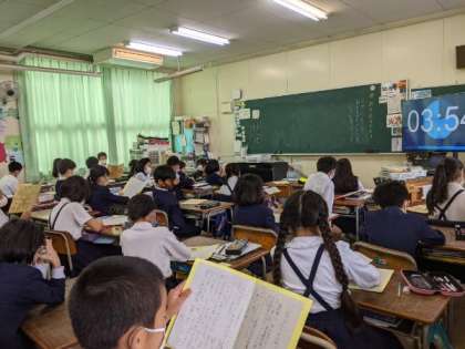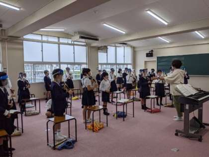 新しくなった音楽室で楽しくリコーダーの演奏をしていました。