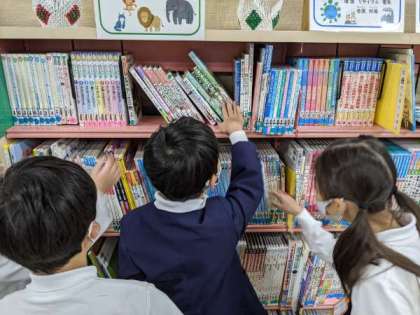 図書室に行って、生き物に関係のある本を探して、調べ学習をしていました。