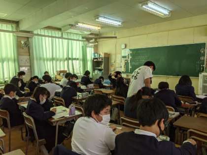 習熟度別に分かれて、グラフや表からどのようなことが読み取れるか学習をしていました。