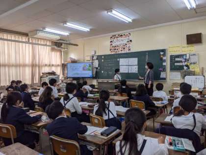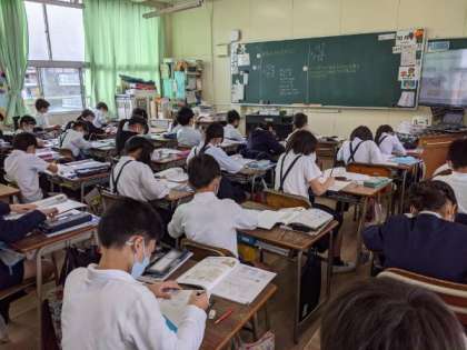 習熟度別に分かれて、かけ算のひっ算に取り組んでいました。