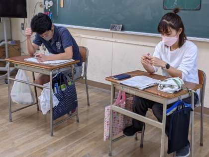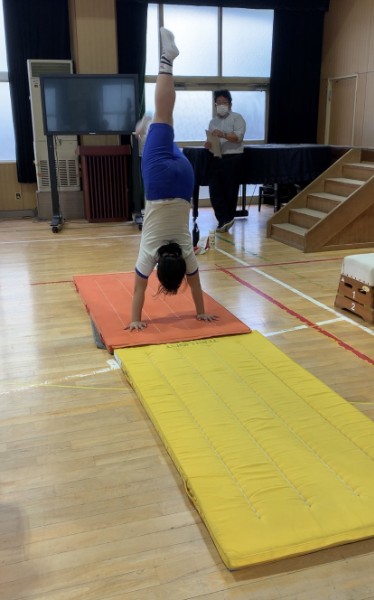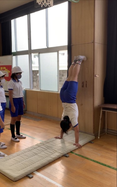 友だちと協力したり、学習者用端末を使って自分の技の出来を確認したりしていました。