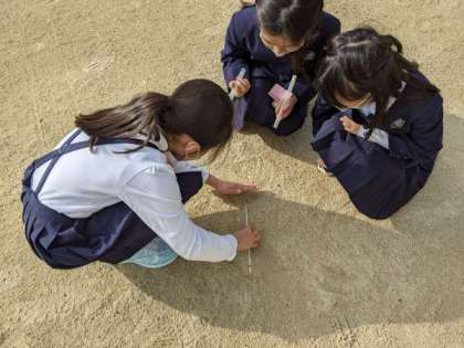 日なたと日陰では、本当に温度がちがうのか、温度計で地面の温度を測定していました。