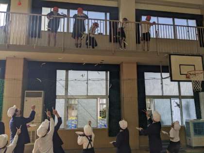 上から落ちてくる紙をおはしで上手にキャッチしていました!