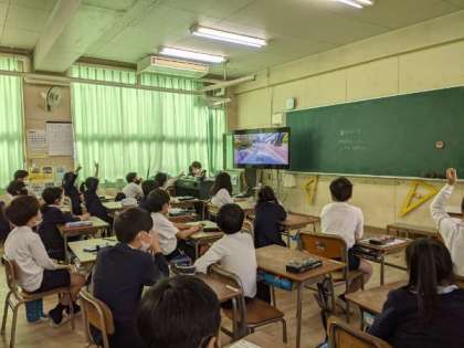 グーグルマップを使って、関目東小学校の校区を疑似体験&振り返りをしていました。